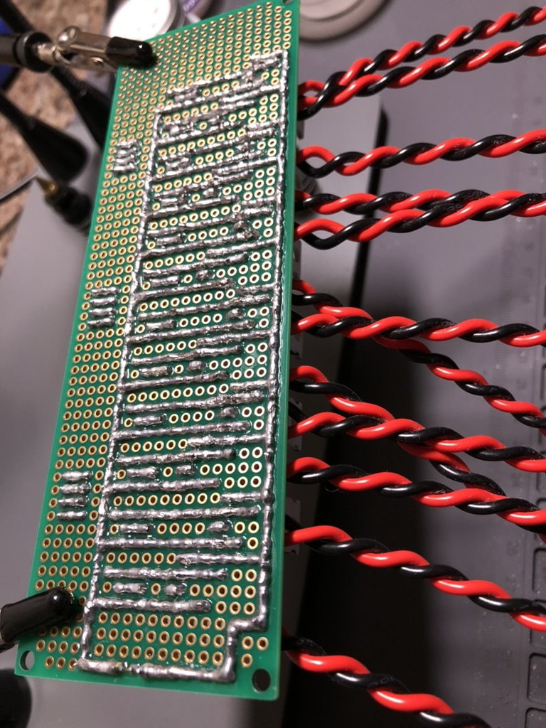 Another mistake that I had made on ARALA v2 was the addition of a decoupling capacitor. After spending some time on EE Stack Exchange I found somebody asking approximately the same thing, and the answer was no, don’t do that – you could damage the MOSFET. Those were all removed for Chief. The only other difference is that while the output wires are still connected directly to the perfboard, these are connected to female JST SM connectors, whereas on ARALA v2 they would have connected directly to sockets for the circular AMP bulkhead connectors on the EGSE. I now had experience with having to remove sockets, and reinstall the relay banks, and decided that there needed to be a faster way to do that.
