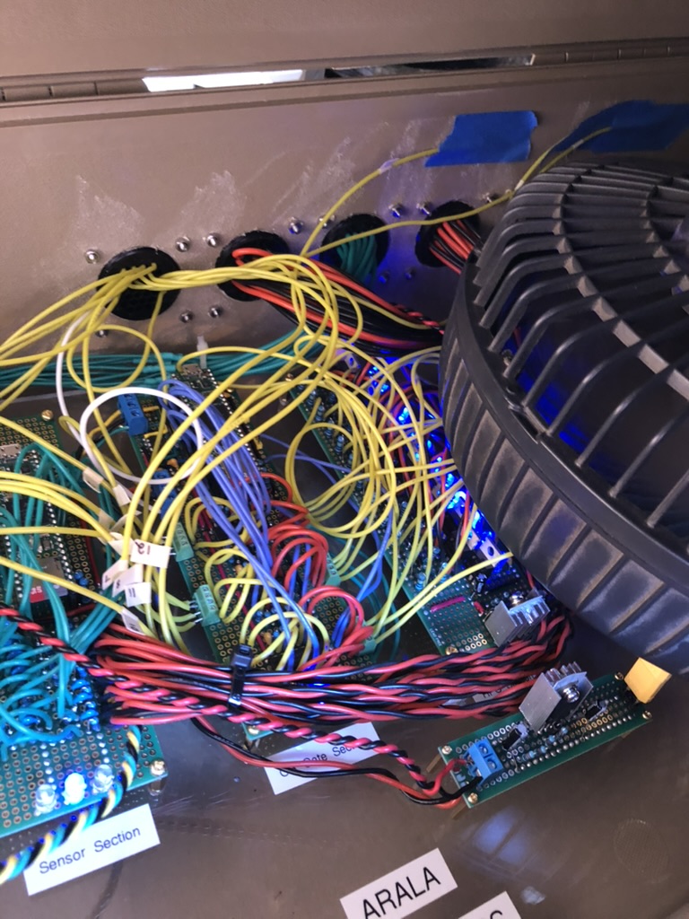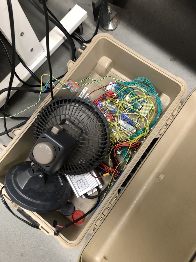 The dry run was on a Saturday and the following day we were supposed to have a water flow test. This presented a problem because in the past BLT avionics had covered the avionics box that housed the ALARA pcbs with a combination of trash bags and duct tape to keep them safe from any mist during testing. If you recall from earlier the fix that was keeping ARALA v2 alive in the first place involved keeping the top of the EGSE container popped open, and also keeping a box fan on it. I reluctantly added trash bags and duct tape, and kind of quietly hoped that if it were kept in the shade that we would not have any problems.