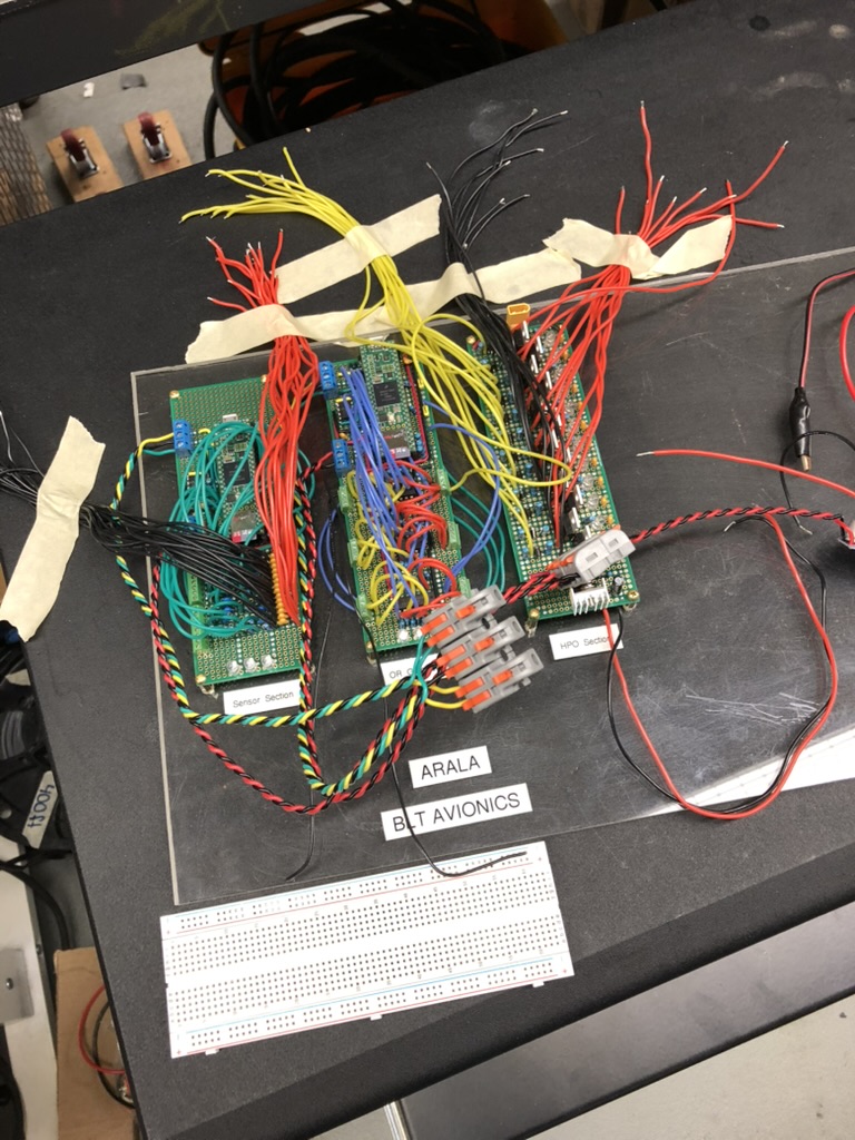 Sometime in July, while working in John Garvey’s garage, I had a conversation with somebody who had been in BLT for some time. They were asking about the avionics that I had planned for the club next year. Specifically we were talking about the pneumatics section of Garv’s K101 rocket. When the rocket left the pad, both of the main valves would be held open because of how the plumbing was set up on the vehicle. However, this was not the case for the Theseus rocket that BLT was building. At the time, the main valves were actuated by a five-way solenoid valve and a Kinetrol. If you tried to launch this rocket the same way that you launched Garv’s it would have gotten a few feet off the ground, and would have started falling after the quick disconnect was removed, and the main valves closed. The only power on Garv’s rocket was a 2 cell LiPo connected to the Quantum Eggtimer I had assembled.