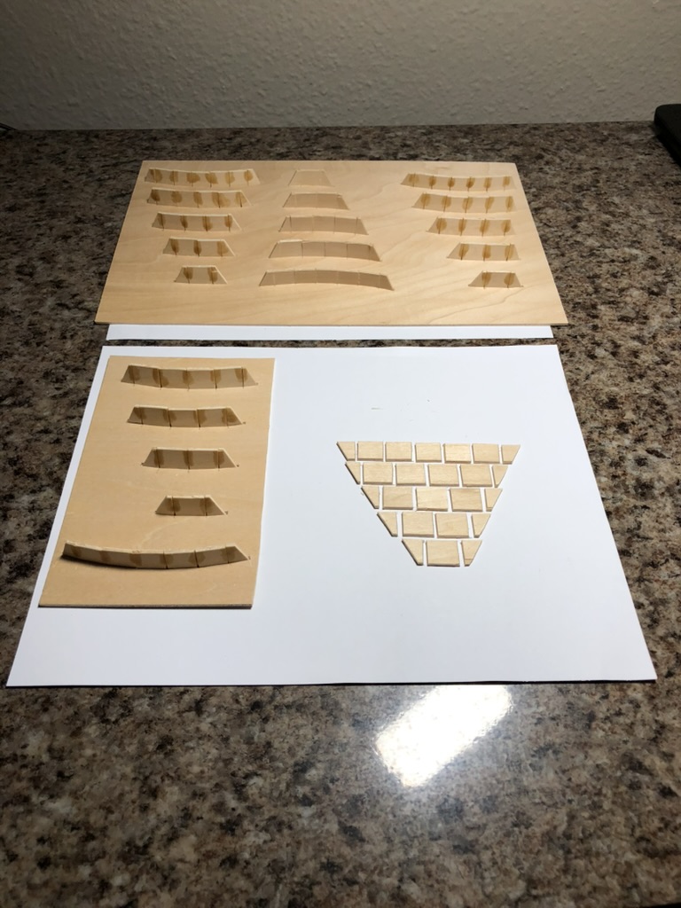 There were a few more little surprises when getting the lengths of the cross sections correct. I do not think that writing them here would be very appropriate as there are a lot of little details. I think an explanation would be better suited for a video. I will mention though that there is a little routine that you need to go through to get the triangular cross section pieces fitting correctly, and if there are many tiers this can take some time.