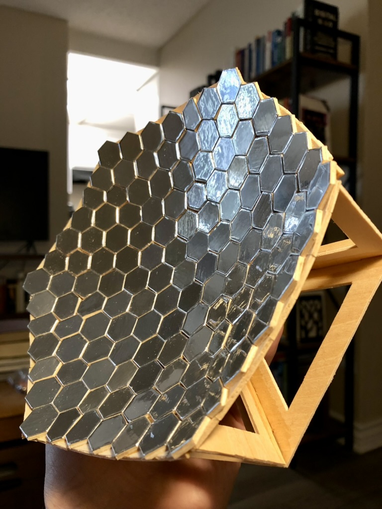 A common theme in most of the videos, excluding those on DIY hydroforming, was a lack of technical information. Like in my case, I had a very specific temperature range that I was trying to achieve, and so far, I had not found anything on how to go about creating something based on that. A lot of the videos would show the reflector being built, and then cut to something being burnt with it. Another thing that was unsettling to me was that none of the videos/articles I came across involved segmented mirrors. Why had nobody done a DIY video on this?
